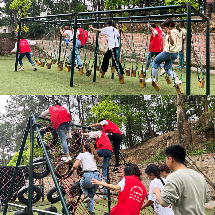 然后就是拓展訓練,我們將成員分成兩隊,分別選出隊長,各自的隊員們前仆后繼,互相協助,最終我們的紅隊獲得了勝利。