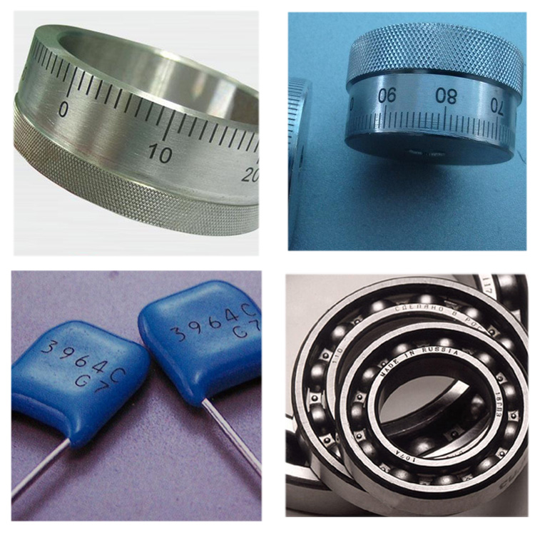 廣泛適用于集成電路芯片、電腦配件、工業(yè)軸承、鐘表、電子及通訊產(chǎn)品、航天航空器件、各種汽車零件、家電、五金工具、模具、電線電纜、食品包裝、首飾、煙草以及軍用事等眾多領(lǐng)域圖形和文字的標(biāo)記,以及大批量生產(chǎn)線作業(yè)。