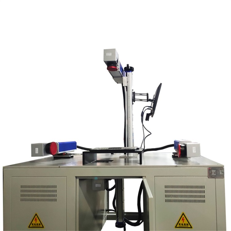 四合一全自動激光打標機適合筆記本各行業(yè)鋁殼破陽打黑打白前面背面左右面4面同時打標進行。