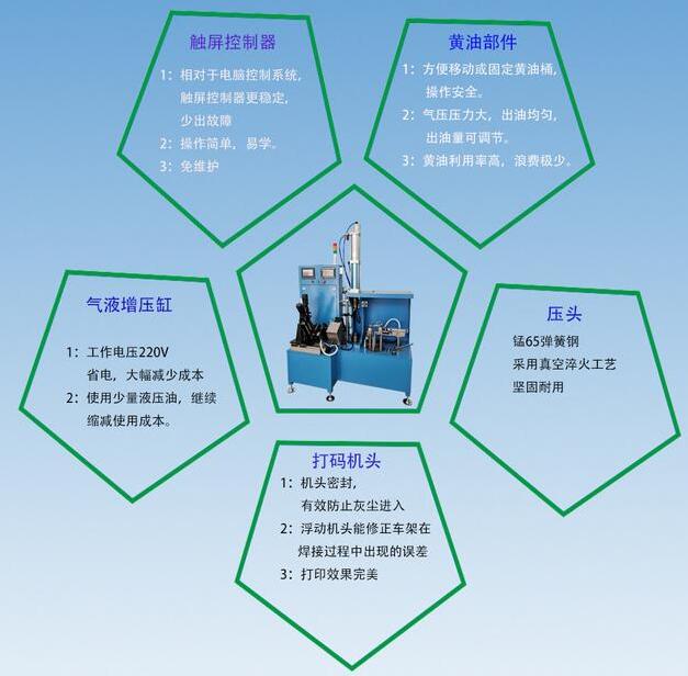 五位一體氣動打標(biāo)機可以打標(biāo),可以加黃油,可以壓鋼碗,一體機價格68000元。