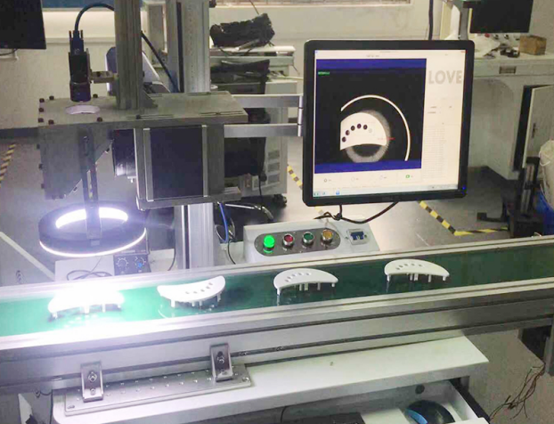 并且所加工的產(chǎn)品外形不限于圓形、方形、非規(guī)則形狀都能夠識別,所以這種工藝特別適合小產(chǎn)品,可免除定位料盤、固定夾具的加工,大大節(jié)省了激光打標(biāo)加工周期。