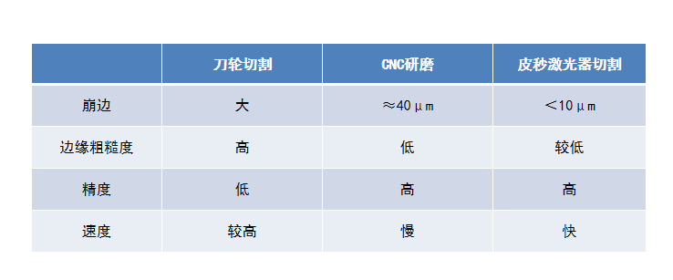 從長遠來看,傳統機械切割在切割時會導致切割邊緣產生微裂紋和碎屑,導致崩邊。后期通常還需要各種如研磨、拋光等處理步驟,來緩解上述問題。